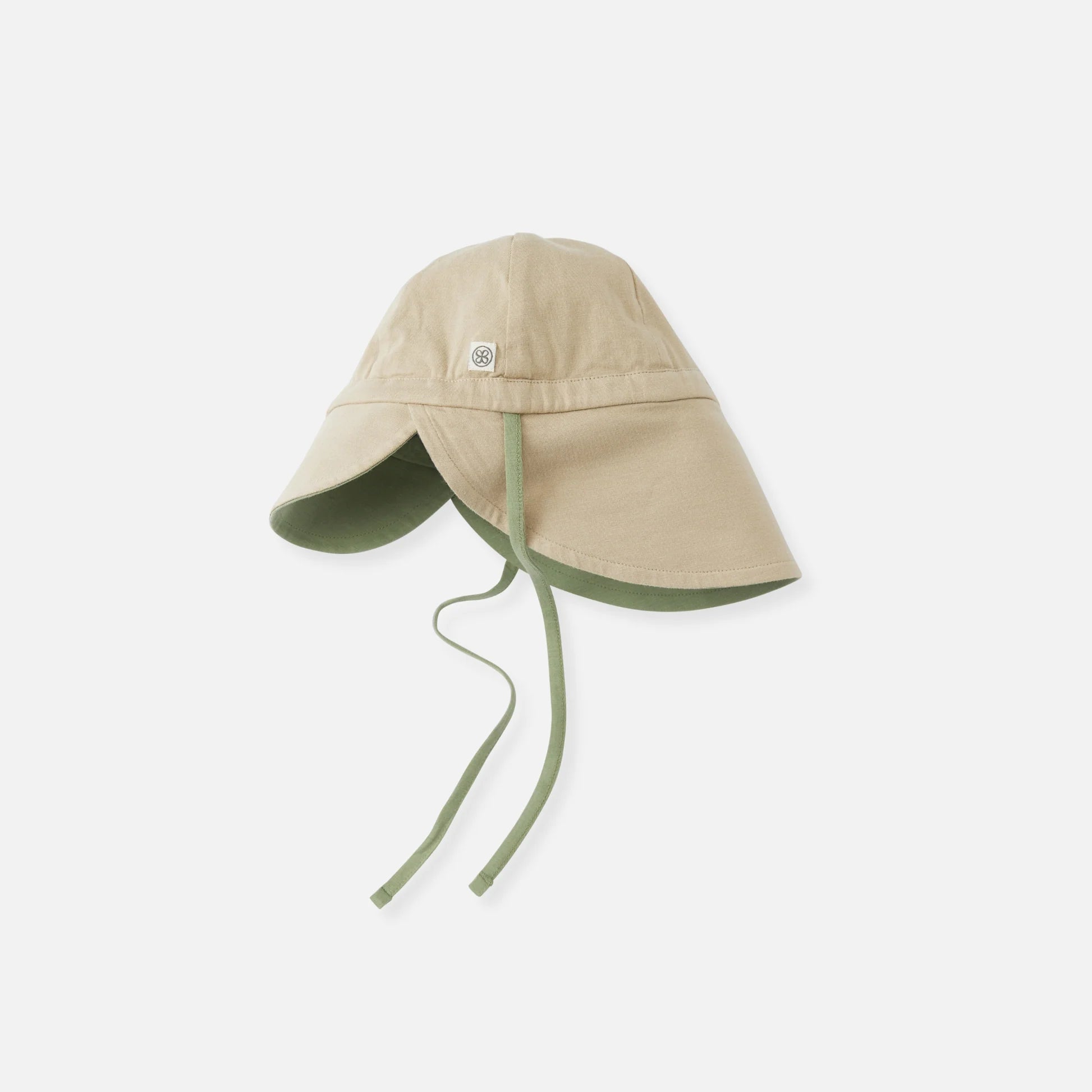 Unser Cloby Sonnenhut in Olive Green/Sandy Beach – UPF 50+sind wendbar und bestehen aus unserem charakteristischen weichen und atmungsaktiven Stoff, der einen natürlichen UPF 50+ Sonnenschutz bietet – ganz ohne chemische Zusätze. Sie sind so konzipiert, dass sie empfindliche Bereiche wie Gesicht, Ohren und Nacken schützen. Ein weiches Baumwollband sorgt für einen sicheren, verstellbaren Sitz, und das Wendedesign bietet zwei Looks in einem Hut.
