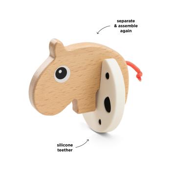 Die süße Ozzo-Holzfigur hat einen Silikonteil mit stimulierenden Kontrasten und einen bunten Schnürchen-Schwanz