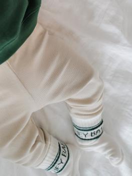 Süße BABYSOCKEN mit eingewebtem HEY BABY und coolen Streifen.