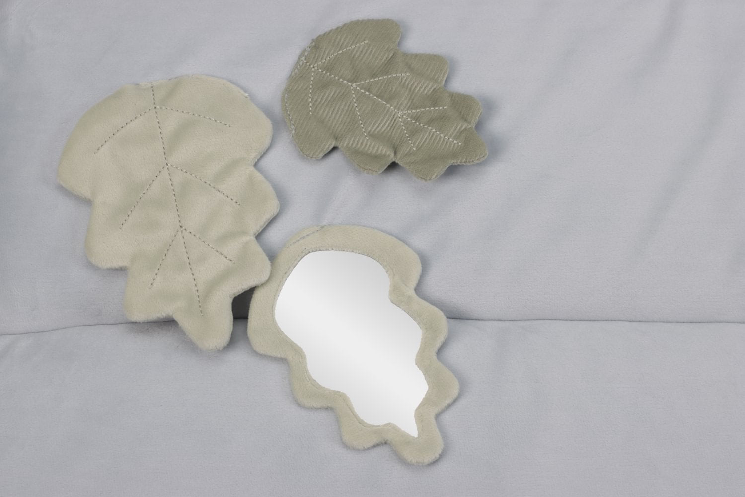 Funktionen: Knisterfolie, Entdeckerspiegel, Rasselring mit Perlen, Fühlelemente