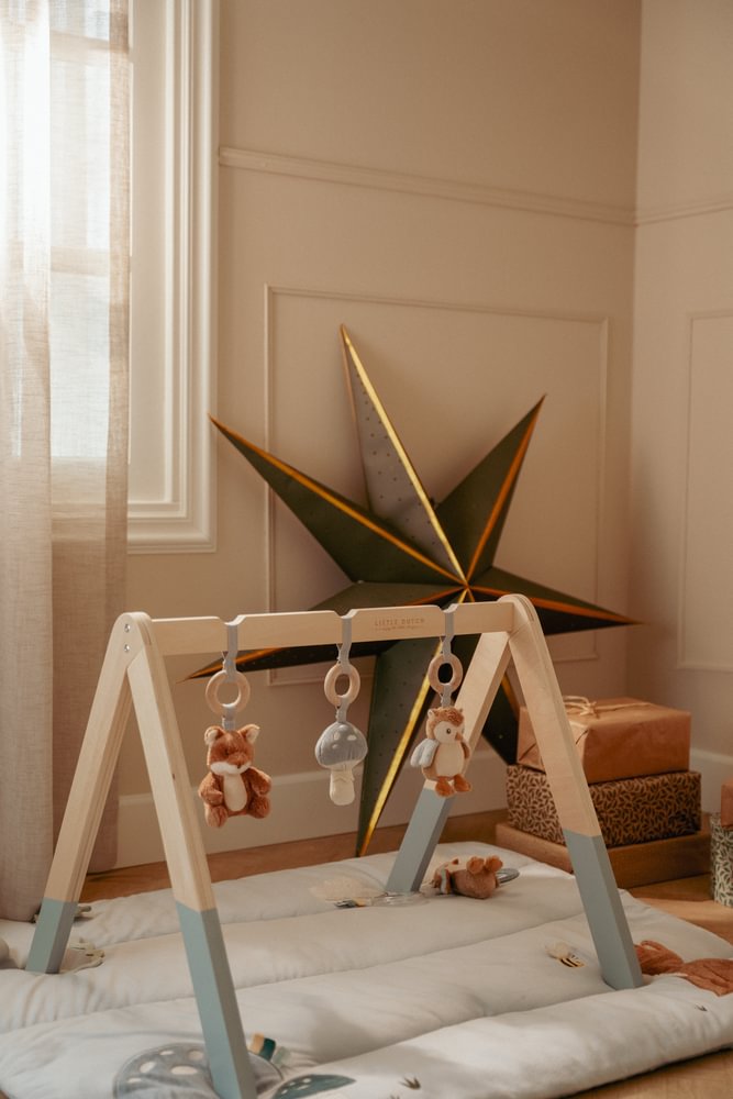 Erkunden Sie gemeinsam mit Ihrem Baby die Geheimnisse des Waldes auf der weich gepolsterten Little Dutch Laufgittereinlage aus der Forest Friends Kollektion. In sanften Blautönen gestaltet, bietet diese Matte zahlreiche sensorische Highlights wie knisternde Blätter, weiche Wolken und einen integrierten Spiegel zur Selbstentdeckung. Die niedlichen Waldbewohner wie Fuchs, Eule und Käfer sowie ein transparenter Rasselring animieren zum Greifen und Fühlen, was die Hand-Augen-Koordination ab der Geburt spielerisch fördert. Dank der komfortablen Polsterung liegt Ihr Kind sicher und gemütlich bei seinen ersten Entdeckungsreisen im Laufstall.