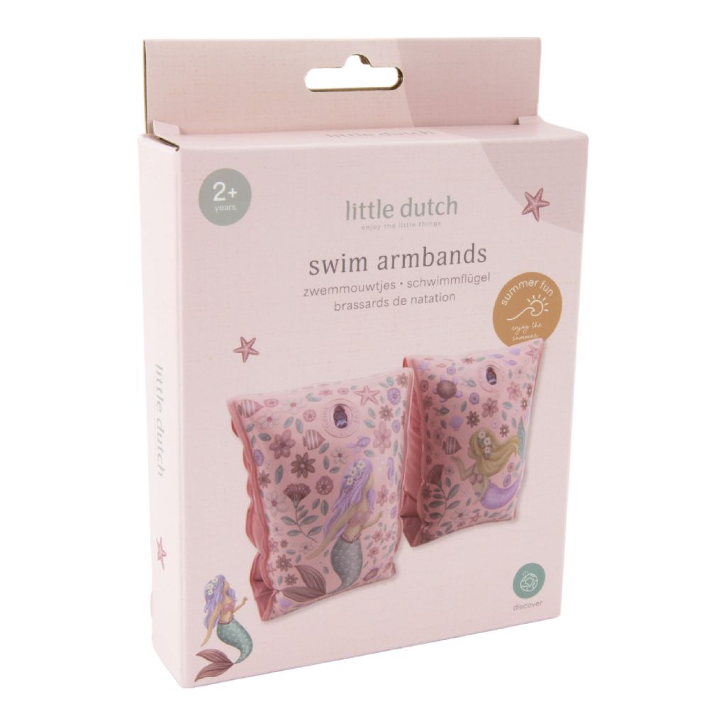 Die Little Dutch Dreamy Mermaid Schwimmflügel unterstützen Kinder sicher bei ihren ersten Schwimmversuchen. Im liebevollen Dreamy Mermaid Design gestaltet, bieten sie zusätzlichen Auftrieb und stärken das Vertrauen im Wasser. Jeder Schwimmflügel verfügt über zwei separate Luftkammern mit Ventil für erhöhte Sicherheit. Gefertigt aus robustem PVC und geeignet für Kinder von 2 bis 6 Jahren bzw. 18 bis 30 kg – ideal für Pool, Strand und Urlaub.