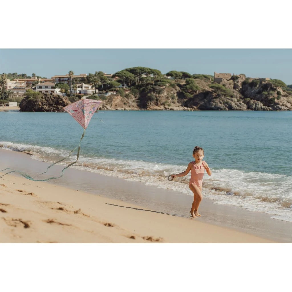 Der Little Dutch Dreamy Mermaid Winddrachen bringt Farbe und Bewegung in jedes Outdoor-Abenteuer. Mit seinem zauberhaften Meerjungfrauen-Design unterstützt er spielerisch die Hand-Auge-Koordination und sorgt gleichzeitig für jede Menge Spaß an der frischen Luft. Der 1-Leiner ist leicht zu handhaben und eignet sich für Windstärken von 2–5 Beaufort. Aus robustem Ripstop-Drachentuch gefertigt und mit stabilen Glasfaserstäben ausgestattet, ist er ideal für Kinder ab 5 Jahren.