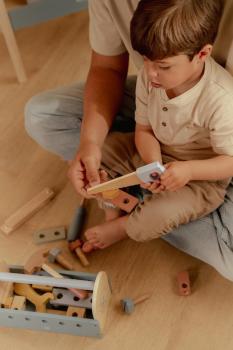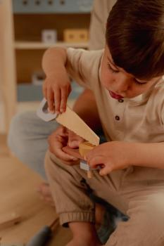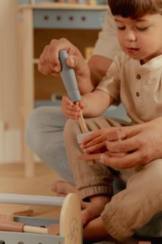 Alles, was ein kleiner Handwerker oder eine kleine Handwerkerin braucht! Dieser Holz-Werkzeugkasten enthält einen Hammer, einen Schraubendreher und einen Schraubenschlüssel – perfekt für das Bauen der schönsten Kreationen. Doch das ist noch nicht alles – die Seiten der Kiste können auch als Hämmerbank genutzt werden! So können die Kleinen hämmern und schrauben, während sie spielerisch ihre Motorik und Kreativität entwickeln. Bereit, loszulegen?