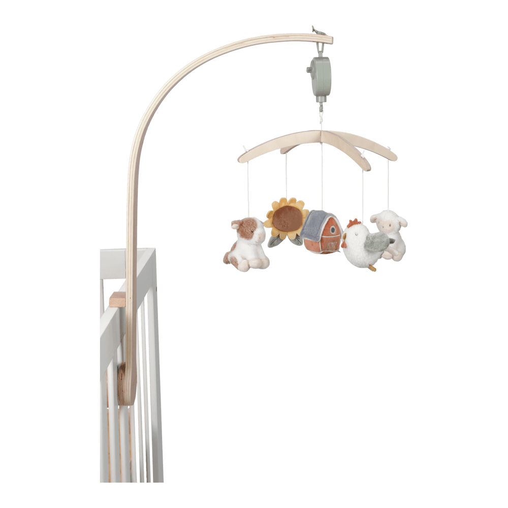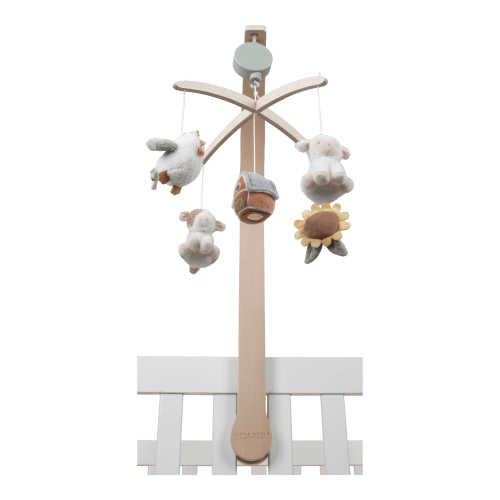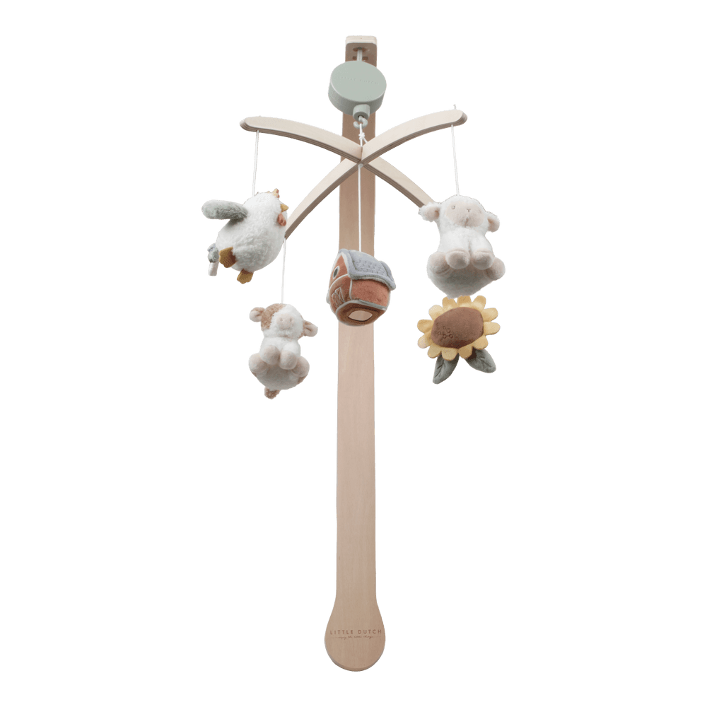 Diese schöne Little Dutch Musikmobile wirkt beruhigend auf Babys dank des lieblichen Schlaflieds. Am Holz Musik Mobile hängen fünf Spielzeuge aus der Little Farm Bauernhof Kollektion. Babys schauen gerne der Bewegung dieser Spielzeuge bzw. Figuren zu, was ihre visuelle Entwicklung fördert. Das Musikmobile ist ab der Geburt geeignet und einfach am Kinderbett oder Laufstall zu befestigen.