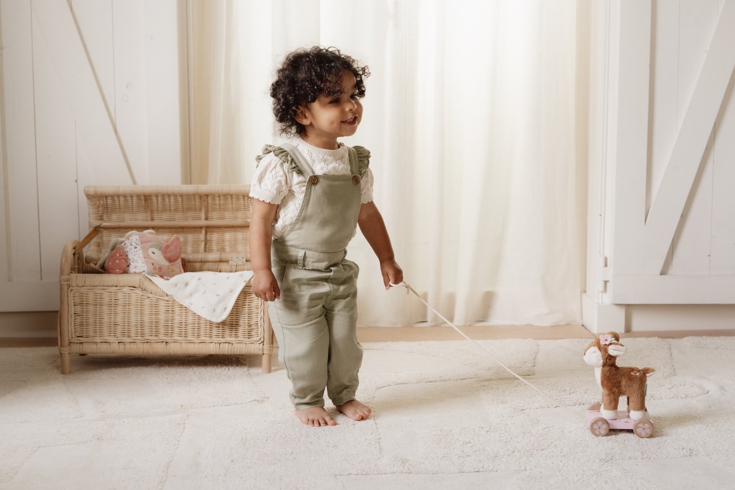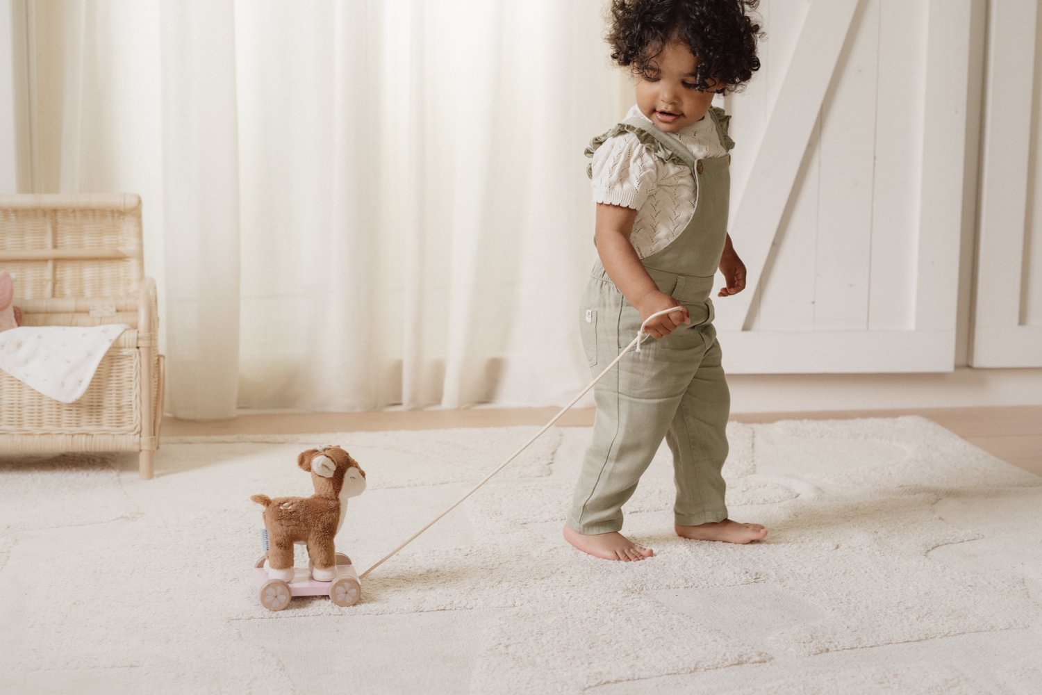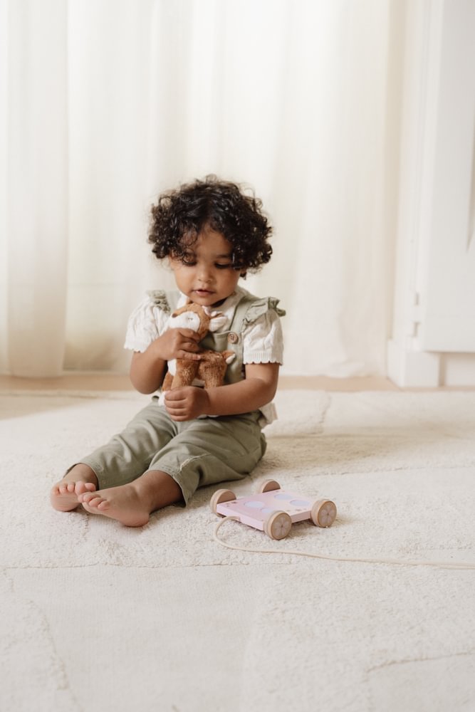 Begleiten Sie Ihr Kind auf den ersten Entdeckungstouren mit dem zauberhaften Little Dutch Nachziehtier aus der Fairy Garden Kollektion. Das kuschelweiche Reh steht sicher auf einem stabilen, rosa lackierten Holzwagen, der mit zarten Blumenmotiven verziert ist. Sobald Ihr kleiner Schatz an der Schnur zieht, folgt das Reh treu durch das ganze Haus und motiviert spielerisch zum Laufenlernen und zur Bewegung. Dieses liebevoll gestaltete Spielzeug fördert nicht nur die motorischen Fähigkeiten, sondern wird auch schnell zum liebsten Begleiter bei allen Abenteuern im magischen Feengarten.