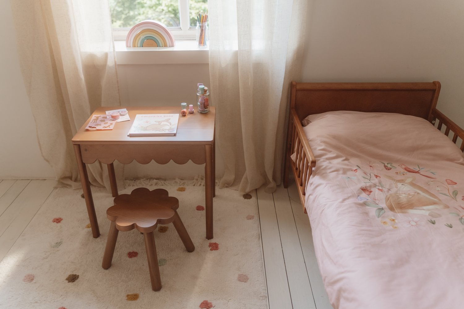 Dieses bezaubernde Schreibset „Forest Friends“ von Little Dutch ist ideal für kleine Künstler und Schriftsteller. Es enthält alles, was für kreative Aktivitäten benötigt wird: ein Notizbuch, geschmückt mit niedlichen Waldtieren, ein bunter Stickerbogen zur Verschönerung der Werke, ein stabiler Lineal für präzise Linien, ein weicher Radiergummi zum Korrigieren von Fehlern, ein Spitzer zum Schärfen der Bleistifte, ein Bleistift für Schreiben und Zeichnen sowie eine Schablone für schöne Formen und Designs.