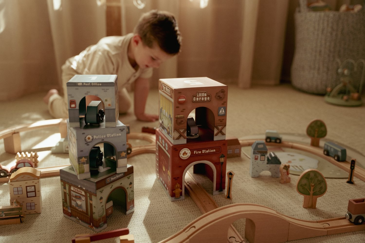 Stapeln, bauen und entdecken! Dieses Set aus 6 illustrierten Kartonblöcken mit passenden Fahrzeugen bietet endlosen Spielspaß. Stapeln Sie die Blöcke aufeinander oder legen Sie sie über die Little Dutch Eisenbahn XL, sodass die Fahrzeuge mühelos darunter hindurchfahren können. Jeder Block hat einzigartige Illustrationen und ein eigenes Fahrzeug, das perfekt passt. Eine spielerische Möglichkeit, die Fantasie und Motorik zu fördern!