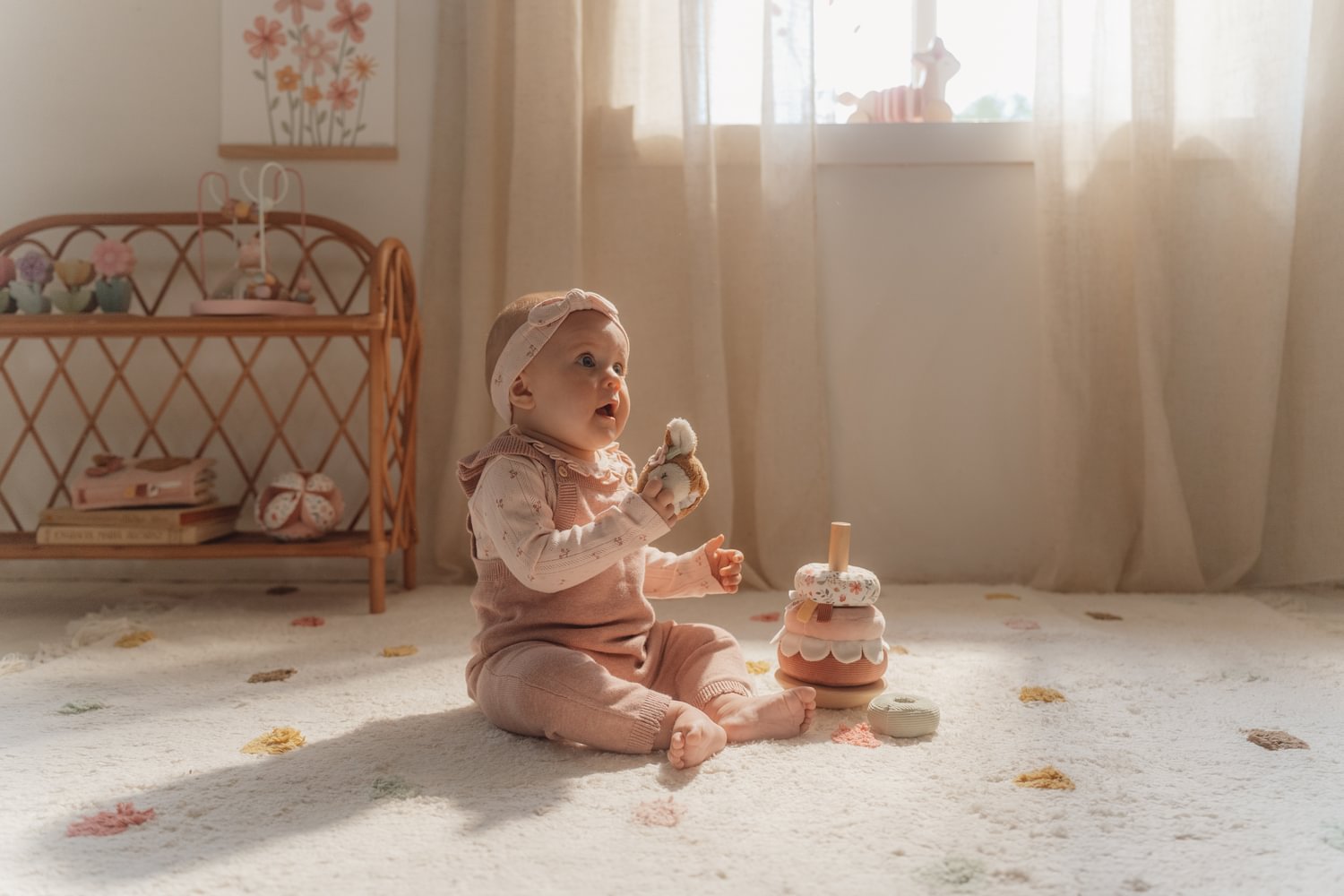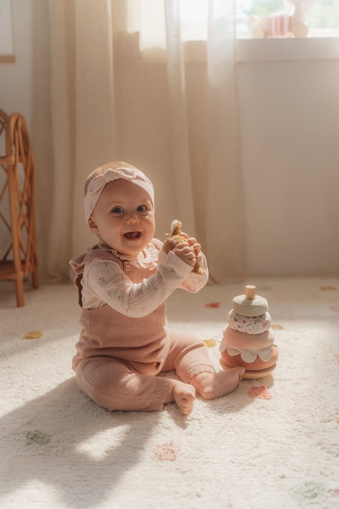 Der Little Dutch Stapelturm aus der Fairy Garden Kollektion kombiniert hochwertiges Holz mit kuschelweichen Textilien zu einem spannenden Motorikspielzeug. Das Stapeln der verschiedenen Ringe auf der wackeligen Basis ist eine spielerische Herausforderung, die gezielt die Hand-Augen-Koordination und Geduld Ihres Kindes fördert. Gekrönt wird die Pyramide von einem niedlichen Rehkitz, das fröhlich tanzt und sich dreht, sobald der Turm im Gleichgewicht ist. Mit seinen sanften Rosatönen und den liebevollen Designs der Ringe ist dieser Wackelstapler ein echtes Highlight in jedem Kinderzimmer.