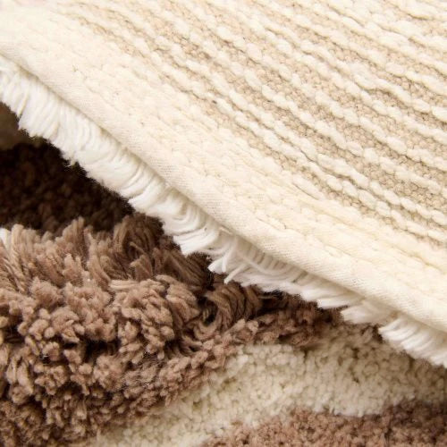 Traktorförmiger Kinderteppich für eine verspielte und gemütliche Atmosphäre im Kinderzimmer. Die weiche Oberfläche aus Bio-Baumwolle fühlt sich angenehm an und lädt zum Spielen ein. Natürliche Beige-, Grün und Brauntöne sorgen für einen harmonischen Look. Eine rutschfeste Latex-Rückseite bietet sicheren Halt auf glatten Böden.