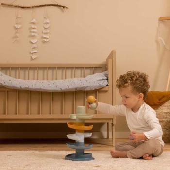 Lasst den Ball einfach rollen! Der Spiralturm von Little Dutch sorgt für endlos viel Spielfreude. Dieses farbenfrohe Set besteht aus fünf dezent gefärbten Teilen, die Ihr Kleinekind einfach aufeinanderstapeln kann. Lassen Sie gemeinsam die Kugeln eine nach der anderen auf die oberste Ebene fallen und beobachten Sie, wie sie nacheinander nach unten rollen und pendeln. Der Spiralturm hilft bei der Entwicklung der Hand-Augen-Koordination und vermittelt den Kleinen etwas über Ursache und Wirkung, was sowohl Spaß als auch lehrreiches Spielen bedeutet. Der Spiralturm wird standardmäßig mit drei leichten und griffigen Kugeln in verschiedenen Farben geliefert. Die Kugeln machen beim Bewegen ein Geräusch.Minimum Alter: 10+ Monate