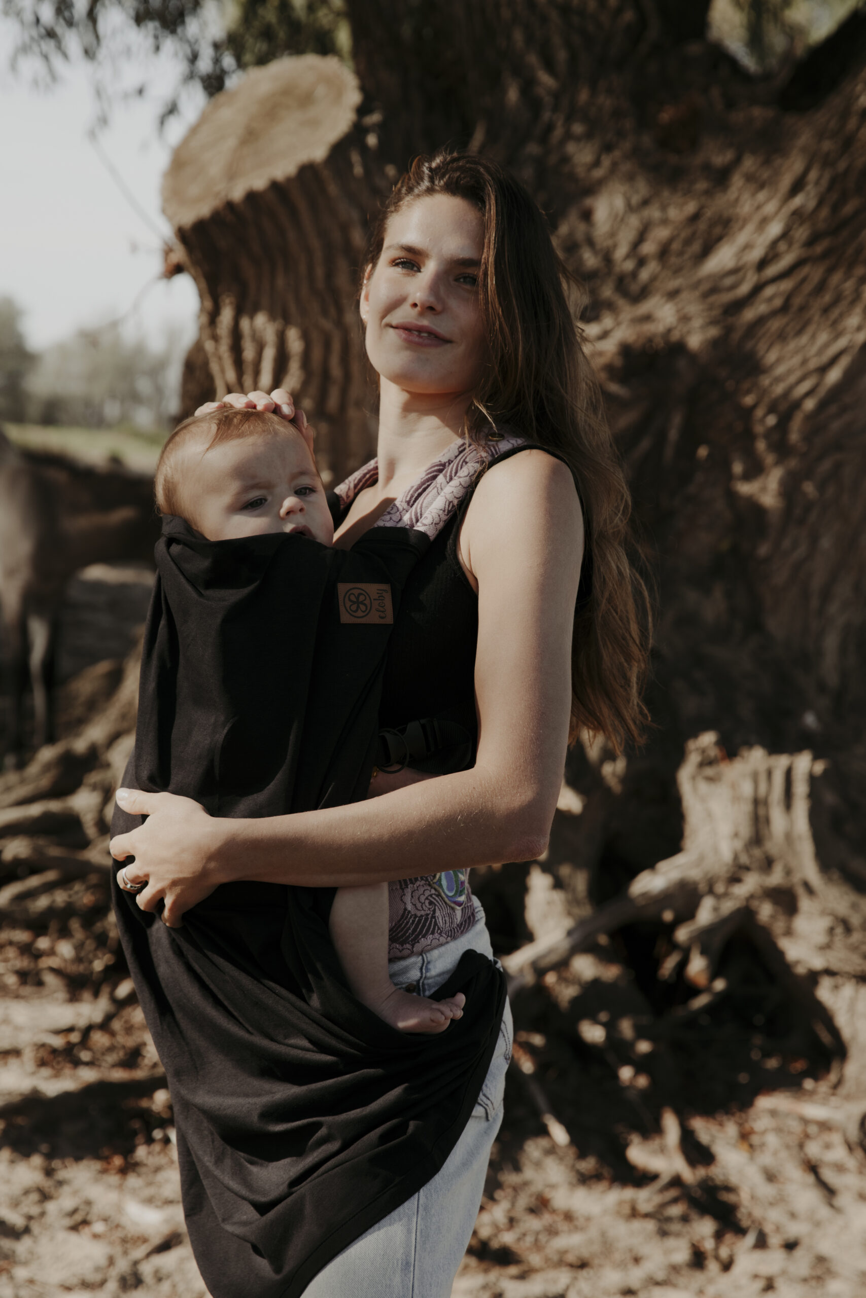 - Tragetuchdecke – Befestigen Sie die Decke an den Gurten Ihres Tragetuches und Ihr Kleines ist an Kopf, Beinen und sogar am Kopf vor der Sonne (und dem Wind) geschützt.
