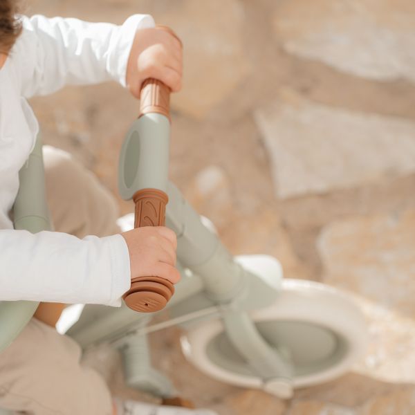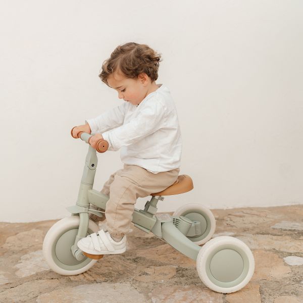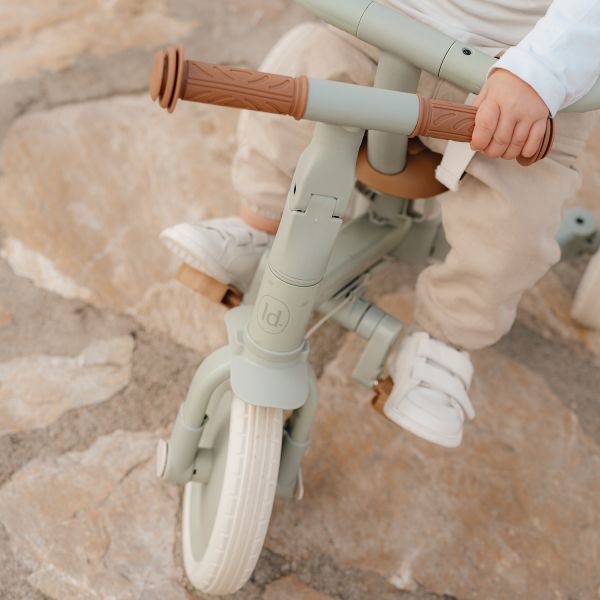 Das Laufrad ist die ideale Vorbereitung, um das Radfahren zu entdecken. Wenn der/die Kleine noch zu klein ist, um selbst zu fahren/laufen, können Mama oder Papa das Kind mit der Schubstange vorwärts schieben. Das Kind sitzt dabei sicher im Sitzgurt und im Sicherheitsring. Sowohl die Schubstange als auch der Sicherheitsring können einfach entfernt werden. Dieses Modell lässt sich leicht von einem Dreirad in ein Laufrad umwandeln, indem beide Hinterräder nach innen geklappt werden. Dadurch wird der Übergang zu einem Fahrrad mit Pedalen erleichtert. Die Pedale lassen sich einfach montieren und können praktisch am Rahmen unter dem Sattel verstaut werden. Der Sattel und der Lenker sind beide an die Bedürfnisse des Kindes anpassbar. Dieses Laufrad hilft dabei, die koordinierte Bewegung des Kindes zu fördern und gleichzeitig das Gleichgewicht zu trainieren.