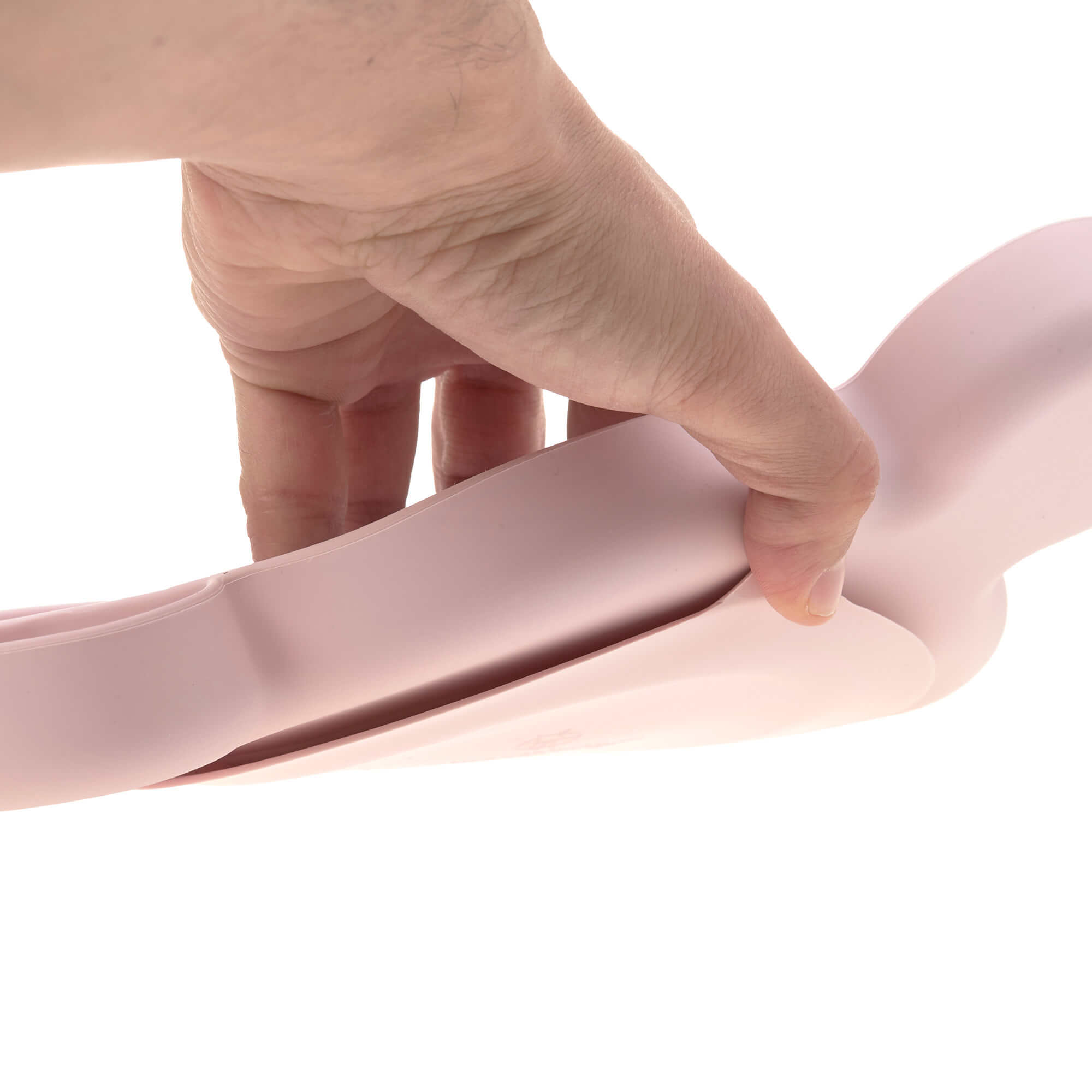 Der Kinder Silikonteller mit Saugfuß in Form der süßen rosanen Maus ist das perfekte Accessoire für die ersten Essversuche. Der Kinderteller haftet auf glatten Oberflächen, ist bruchfest sowie mikrowellen- und spülmaschinengeeignet.