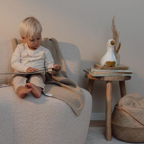 Schlaf gut, kleines Gänschen: In diesem Pyjama in neutralen Tönen und mit einem niedlichen Gänschen bist du schnell im Traumland. Dieses zweiteilige Set hat ein Muster aus weißen und beigen Streifen auf der Hose und einen charmanten Druck eines schläfrigen Baby-Gänschens auf dem cremeweißen Shirt. Entworfen, um mit der passenden Bettwäsche kombiniert zu werden, ist dieser Pyjama aus Bio-Baumwolle für herrliche Weichheit und angenehmen Komfort gefertigt. Verpackt in einer schönen Geschenkbox und erhältlich in den Größen 62/68, 74/80, 86/92 und 98/104.