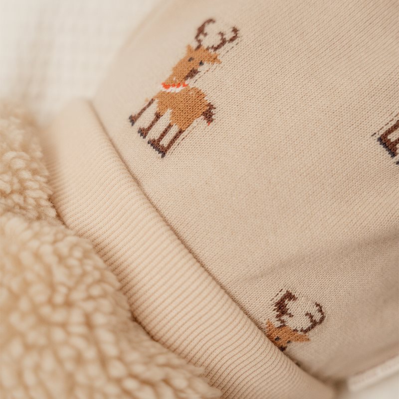 Rentiere mit roten Nasen machen Lust auf Weihnachten! Dieser kuschelige und weiche gestrickte Pullover mit Rentierdessin ist der perfekte Look für Weihnachten. Mit seinem Sandfarbton und der weichen, zertifizierten Bio-Baumwolle ist dieser festliche Pullover das perfekte Outfit für Ihr kleines Bündel Weihnachtsfreude. Die Öffnung an der Schulter mit zwei Druckknöpfen erleichtert das An- und Ausziehen des Kindes. Erhältlich in den Größen 50, 56, 62, 68, 74, 80, 86, 92, 98 und 104.
